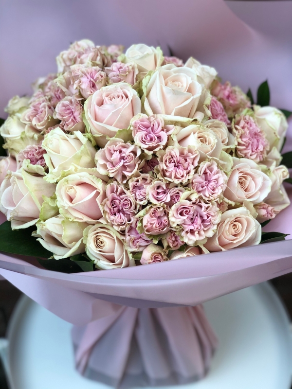 Gorgeous soft pink roses with spray roses to compliment